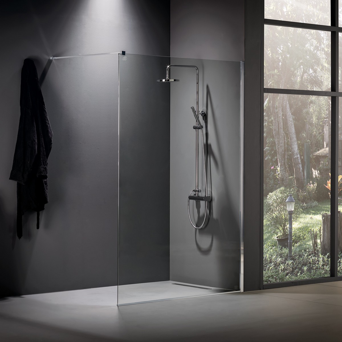 ΚΑΜΠΙΝΑ IWIS CHROME 70 με βραχίονα κάθετης ή διαγώνιας στήριξης 100 εκ.Μπορεί να τοποθετηθεί είτε πάνω σε ντουσιέρα είτε απευθείας στο δάπεδο. Μέγιστη προβολή 100 εκ. (η προβολή μπορεί να μειωθεί με κοπή του βραχίονα στήριξης στο επιθυμητό μήκος)