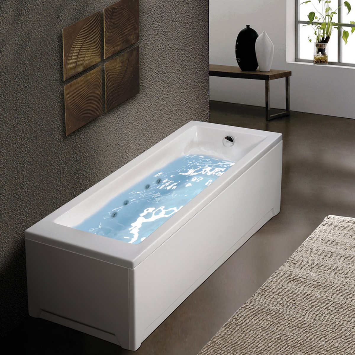 ΜΠΑΝΙΕΡΑ CUBIC 220lt με σύστημα υδρομασάζ 0,88hp, 6 jet, πνευματικό χειριστήριο on/off, αισθητήρα στάθμης νερού και χαλύβδινο πλαίσιο περιμετρικής στήριξης.Τοποθέτηση: ή με ποδιά εμπρόσθια ή και πλαϊνή ή ένθετη (χωρίς ποδιές).Περιλαμβάνει πλαίσιο ολικής στήριξης